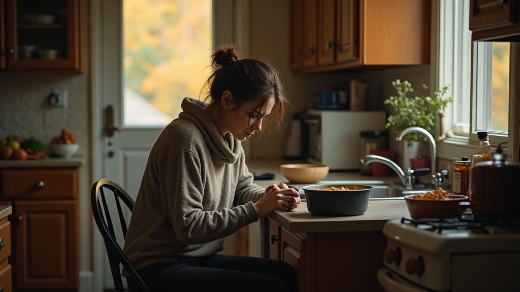 Женщина устало опустилась на табурет, машинально поправляя выбившуюся прядь волос. День выдался хлопотным: уборка, стирка, готовка – обычная рутина домохозяйки, которая почему-то сегодня казалась особенно изматывающей.