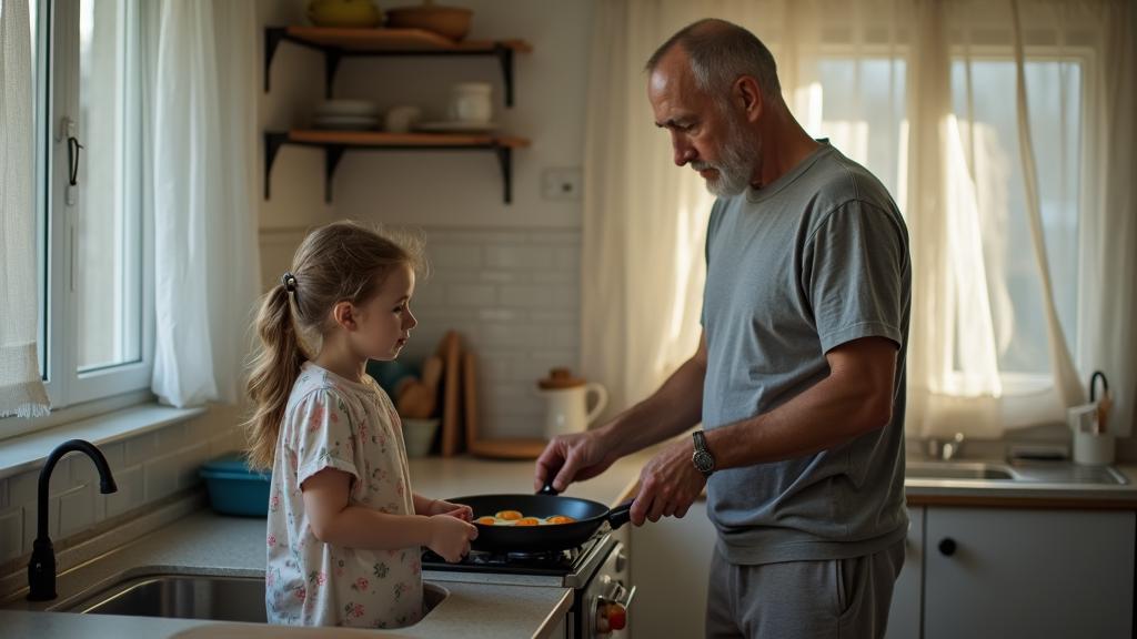Мартовский ветер трепал занавески на кухне, пока я готовил завтрак. Привычное утро воскресенья — яичница, тосты, какао для Сони. Моя десятилетняя дочь всегда просыпалась раньше меня по выходным, и я часто заставал её сидящей у окна с альбомом для рисования. Но в это утро что-то было не так.