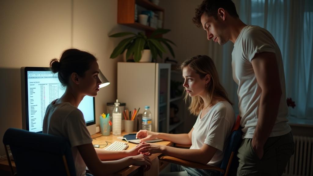 Дверь с грохотом захлопнулась, и в квартире повисла тяжелая тишина. Игорь и Анна сидели, каждый в своей тени, как будто не находили слов, чтобы разрядить эту атмосферу.