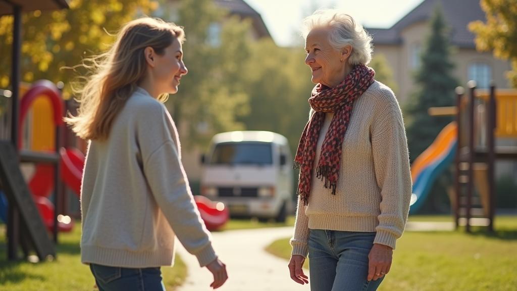 Алёна гуляла с сыном на детской площадке, когда к ней подошла соседка Мария Петровна.