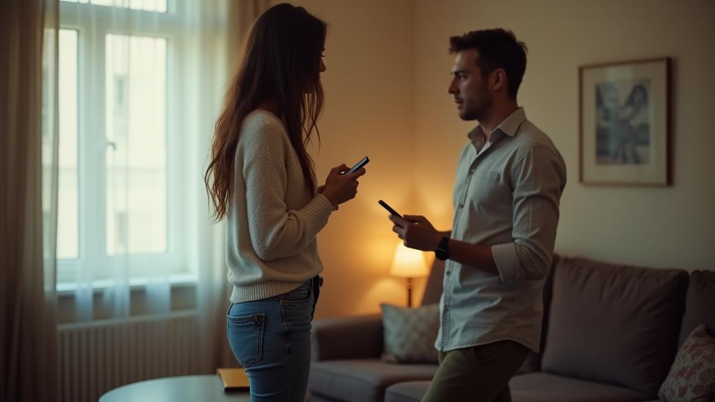 Она положила сумку в угол, прошла в спальню. Кирилл остался в гостиной, погружённый в свой телефон.