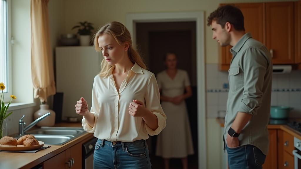 Максим стоял у раковины, неуклюже намыливая тарелку, и бросал на жену виноватые взгляды. Алена молча мыла вилки и ножи, делая вид, что ничего не замечает. Свекровь не ушла — она стояла в дверном проёме, скрестив руки и недовольно поджимая губы.