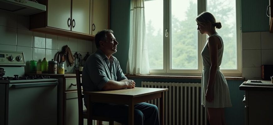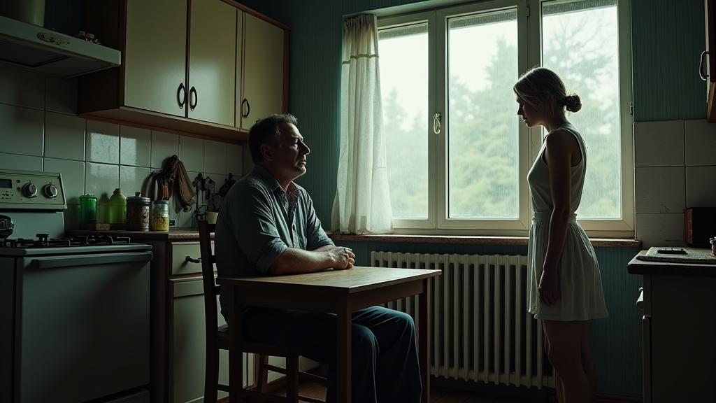 Леонид разговаривал с Соней на кухне, сидя за столом. Соня разговаривала с Леонидом, стоя у окна.