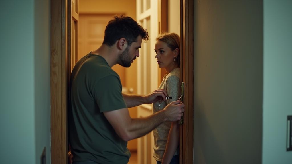 Нина приоткрыла дверь на цепочке, давая понять, что не хочет пропускать мужа внутрь.
