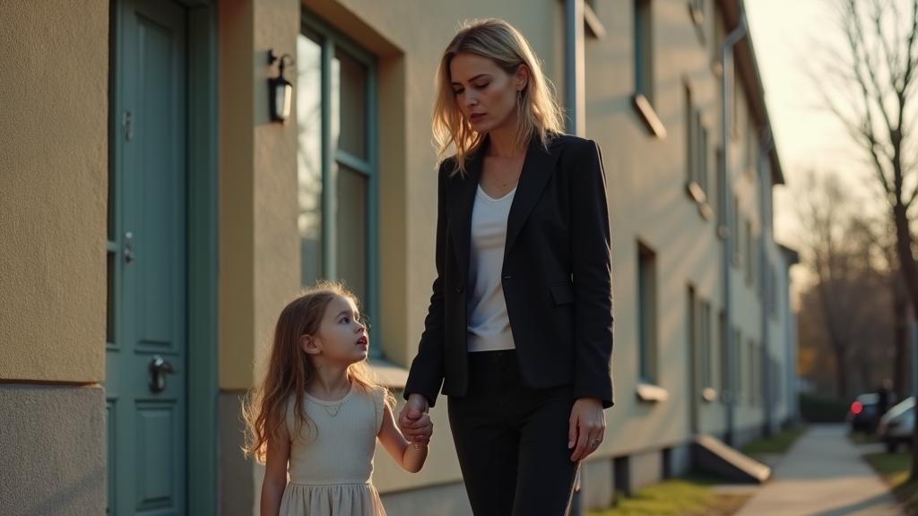 Она вышла из детского сада, крепко держа дочь за руку.