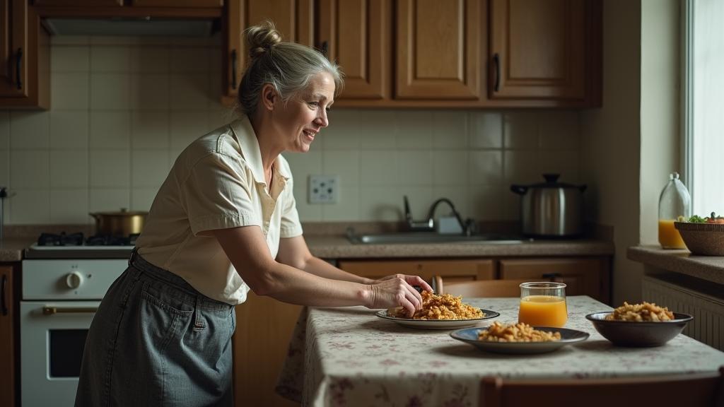 Как-то раз сильно ухряпалась Нюра. На работе был день тяжёлый, ждали СЭС, промывала все углы. Дома в кухне генеральную уборку затеяла, кастрюли большие достала и почистила, печку подбелила, во всех шкафчиках прибралась.