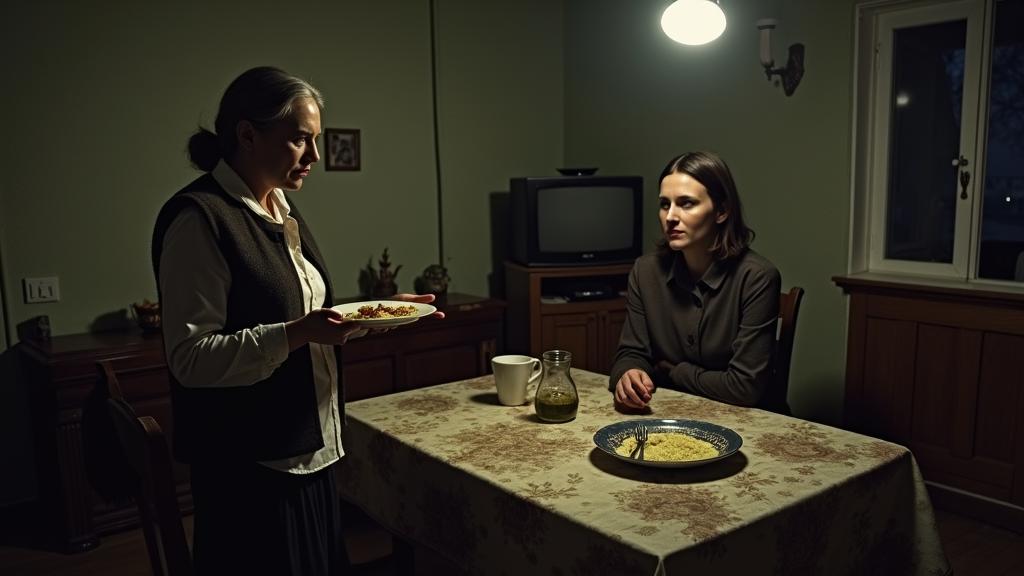 За столом было тесно. На скатерти — пятна от борща. Под потолком — гирлянда, перекрученная в одном месте. Отец Егора, Валерий Иванович, дремал у телевизора, тихонько похрапывая.