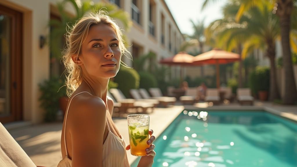 Сижу я, значит, у бассейна, потягиваю коктейль (кстати, очень вкусный мохито с мятой и лаймом – обязательно закажите, если будете там), и тут замечаю его. Австриец, лет 35-37, высокий, подтянутый, с седыми висками и очень выразительными голубыми глазами. Одет в стильную футболку и шорты, явно не турист – держится уверенно, как человек, который часто путешествует.