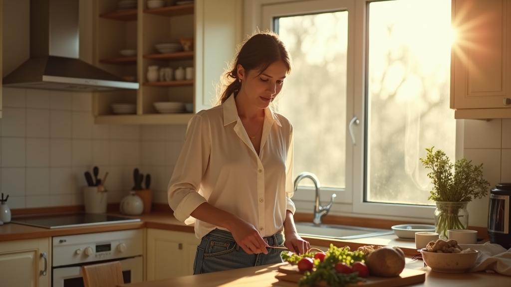 Девушка решила приготовить ужин, что-то простое, домашнее. Заработав в этом месяце в два раза больше обычного, она посчитала, что заслужила хороший отдых.