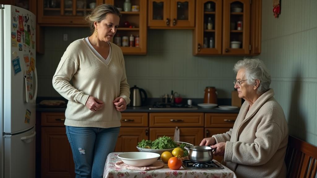 — Мам, открывай! — крикнула я, переставляя сумки на крыльцо. Дверь скрипнула, и на пороге появилась её худенькая фигура в старом халате.