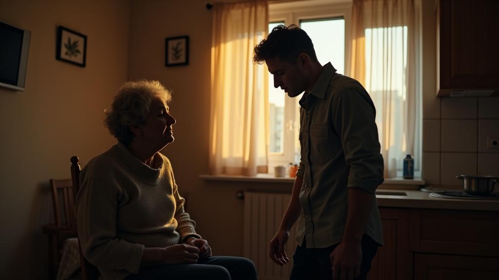 В комнате стало душно. Сквозь тонкие занавески пробивалось вечернее солнце, делая пляшущие пылинки в воздухе похожими на золотой дождь. Старые часы тикали на стене, отсчитывая секунды неловкого молчания.