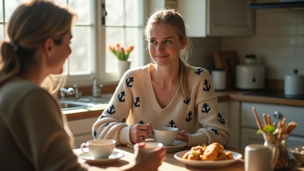Лена закусила губу. За окном заскрипели качели — соседский мальчик гонял по двору с собакой. Она вдруг вспомнила, как Дима вчера вернулся с «рыбалки» в новом свитере с узором из волн.