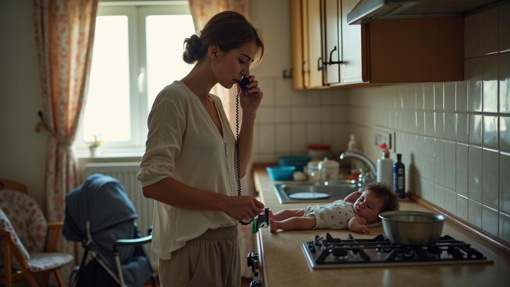 На кухне пахло слегка подгоревшей овсянкой, которая уже минуту как тихо выкипала на плиту. Четырёхмесячный Тимофей разошёлся в коляске на весь спектр нот: от негодования до трaгедии. Анжела одной рукой разводила смесь для него, второй пыталась нащупать бутылочку, а ногой качала коляску. Телефон был зажат между ухом и плечом.