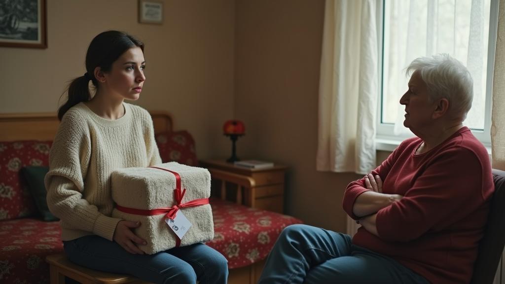 — Мам, но это же не подарок, если ты просто берёшь первую попавшуюся вещь, которая тебе удобна, — тихо сказала Алла, крутя обшарпанную коробку с полотенцами в руках.