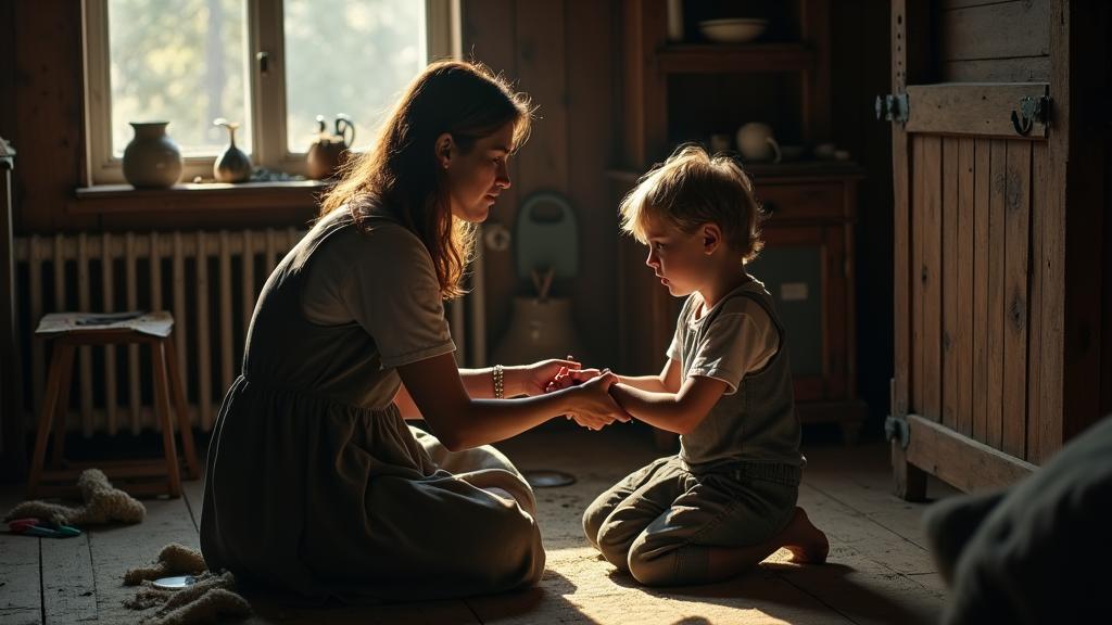 Анна, просидев всю ночь с Митькой, поняла, что тянуть больше нельзя. Утром, едва забрезжил рассвет, она сообщила Демьяну, что Димка больше не будет ему помогать. — Слишком сильно повлияло это событие на и без того больную психику ребёнка, — сокрушенно покачала она головой, глядя куда-то в сторону. Демьян лишь вздохнул в ответ, понимая, что возражать бесполезно. Анна понимала, что нужно что-то делать. Димка с каждым днем становился все более замкнутым и отстраненным. Его мучили кошмары, он почти не ел и почти не разговаривал. Но что делать? Как помочь сыну? Как вернуть его к нормальной жизни? Решение пришло неожиданно, словно озарение: Митьке нужна жена! Будет жена — и дурь вся из головы уйдёт, да и хозяйство какое-никакое, а будет. Кстати, подходящую невесту найти было совсем несложно. В соседней деревне жила у Анны то ли двоюродная, то ли троюродная сестра. У той было три сына, все здоровые и крепкие, и одна дочь — Даша. Девочка отставала в развитии и красотой не блистала. Как говорили в народе — большой ребёнок, скорее всего, с рождения страдавшая известным сейчас синдромом. Но девушка была добрая, тихая и работящая. — В общем, встретились два одиночества, — подумала Анна, и в голове созрел план. Не теряя времени, Анна собралась и поехала в соседнюю деревню. Сестра встретила её радушно, напоила чаем и расспросила о деревенских новостях. Анна, ответив на вопросы, перешла к делу. — Я к тебе с просьбой, — начала она, глядя сестре прямо в глаза. — С какой такой просьбой? — удивилась сестра. — Знаешь, у меня Димка совсем плох стал после того случая с Машенькой. Ничего ему не мило, ничем не интересуется. Врачи говорят, что ему нужна семья, забота. Вот я и подумала… Может, Даша могла бы стать ему женой? Сестра опешила. — Ты шутишь, Ань? Даша и замуж? Да кто её возьмёт-то такую? — А Димка что, хуже других? Дом у него есть, хозяйство крепкое. Да и Даша, как я помню, девочка добрая и работящая. Будут друг другу помогать. Сестра задумалась. С одной стороны, ей было жалко Глашку, не хотелось отдавать её в чужую семью. С другой стороны, она понимала, что для Глаши это может быть единственный шанс на нормальную жизнь. — Я подумаю, Ань. Не могу я сразу такое решение принять, — сказала сестра. — Подумай, подумай. Я не тороплю. Но помни, что для Митьки это может быть единственная надежда, — ответила Анна и уехала домой. Через несколько дней сестра приехала к Анне в гости. — Я согласна, Ань. Пусть Даша попробует. Хуже всё равно не будет, — сказала она. Анна обрадовалась. Вскоре сыграли скромную свадьбу. Даша переехала в дом к Митьке и Анне. Началась новая жизнь.