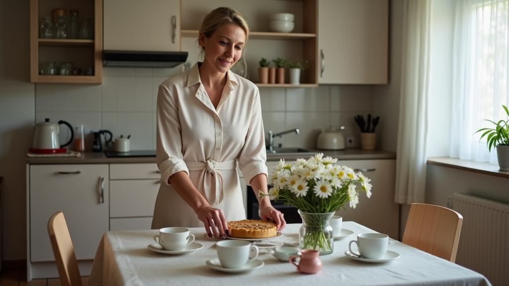 На кухонном столе — идеально ровная скатерть, чашки с блюдцами, нарезанный на одинаковые кусочки пирог. Екатерина автоматически отметила: свекровь достала парадный сервиз. Что-то важное.