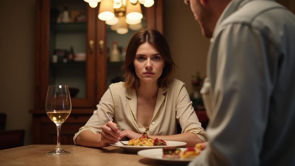 Вика почувствовала, как стол будто отодвинулся от неё. Родительская квартира, праздничный ужин, запах домашних блюд — всё мгновенно стало чужим. Она отложила вилку.