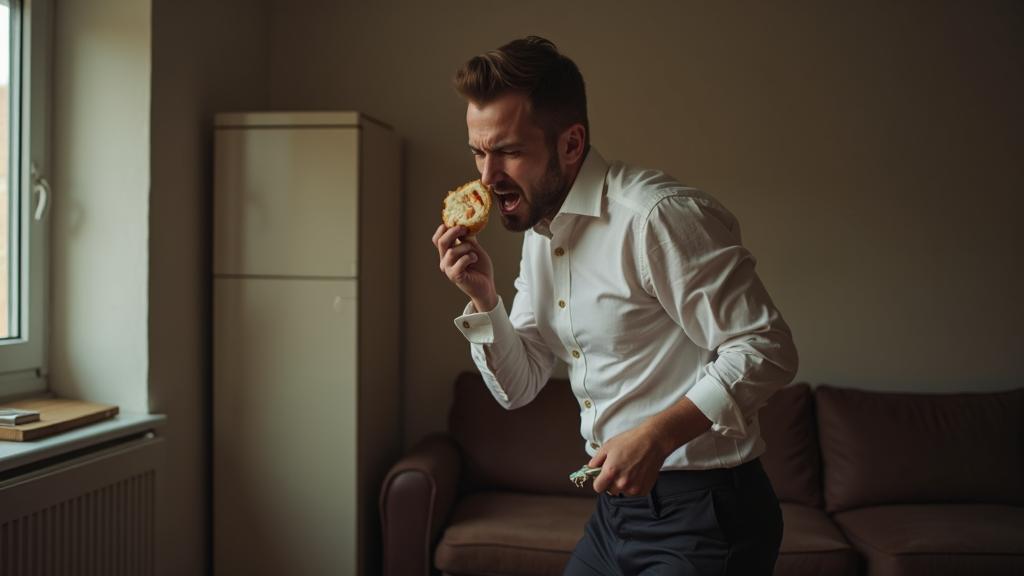 — Пора, пора на работу, — без остановки повторял Эдуард, пока бегал по квартире, одновременно пытаясь проглотить бутерброд, который приготовила ему жена, и в то же время натянуть брюки.