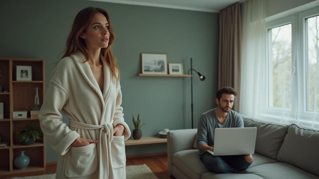 Ирина вышла из спальни, взгляд её был холодным, и вместо приветствия она молча прошла к кухонной тумбе, избегая смотреть Владу в глаза. Атмосфера казалась ледяной, и каждый её шаг усугублял его чувство вины и несправедливости одновременно.