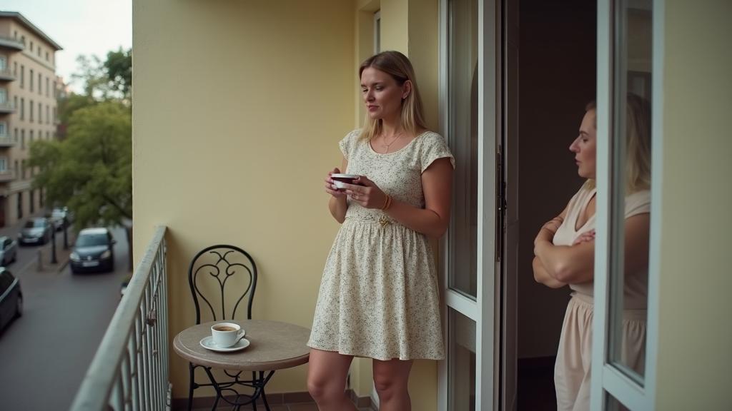 — Ой, не нравится мне твой балкон, конечно. Столик маленький, позавтракать уже не получится, да и вообще ничего не видно. Лучше бы окна в пол сделали, панорамные, — высказалась Наташа, медленно попивая кофе на балконе.