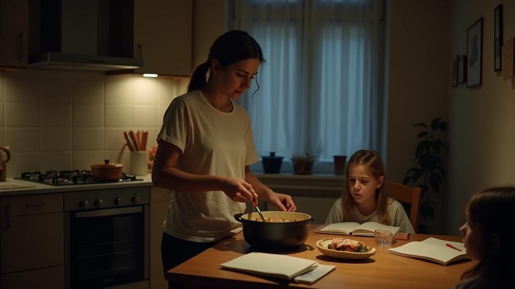Марина стояла у плиты, перемешивая овощное рагу с индейкой. На часах было половина восьмого, а Андрей, как обычно, задерживался на работе. Дочь Катя сидела за столом, делая уроки, изредка поглядывая на мать.