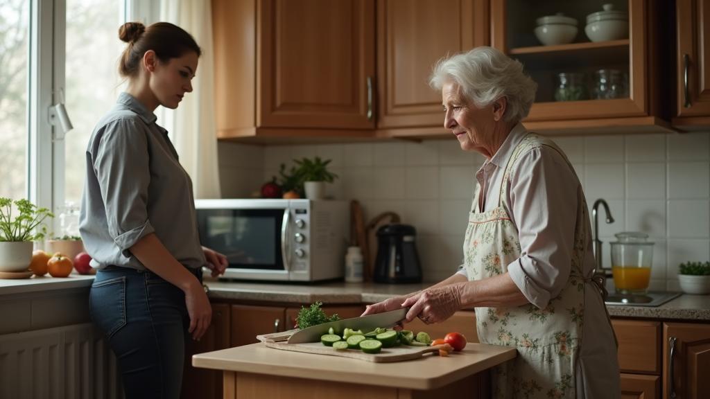 — Анна Ивановна, я вас уже три раза просила — не класть мокрые тряпки на микроволновку, — сдержанно проговорила Оксана, вытирая мокрое пятно с металлической поверхности. — Она потом пахнет плесенью.