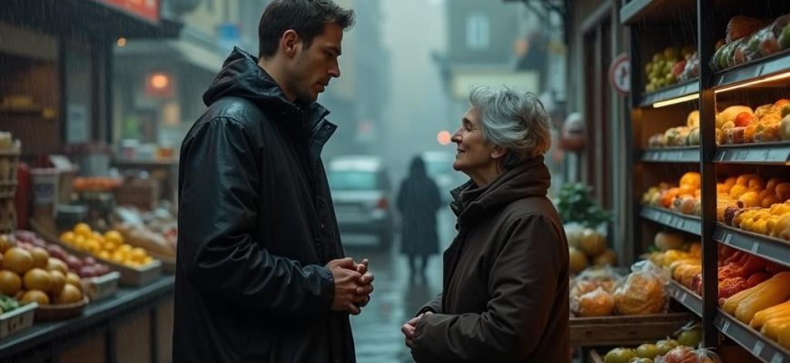 — Позвольте, я помогу донести вам всё это до дома, — предложил он, глядя, как женщина чуть нахмурилась, пытаясь поднять сумку.