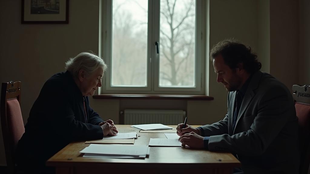 Нотариус, пожилая женщина в строгих очках, профессионально игнорировала происходящее, методично перекладывая бумаги. Ей за свою практику приходилось видеть всякое.