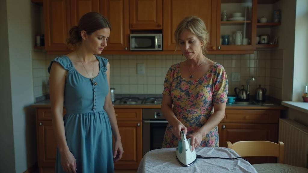 Сумка соскользнула с края стола, свекровь рванулась её подхватить и налетела на гладильную доску. Доска качнулась. Утюг соскользнул прямо на ткань.