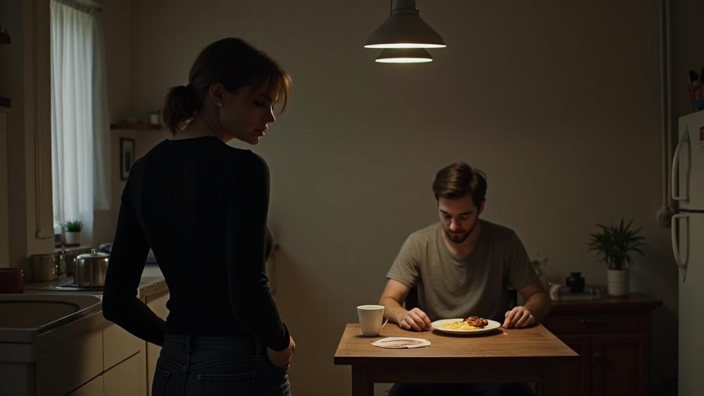 На кухне царил полумрак, пахло мятным чаем и чуть-чуть — раздражением. Алексей сидел за столом, методично ел яичницу с колбасой, и ни одна эмоция не тронула его лицо. Словно в окаменелой версии «Счастливого семейства».