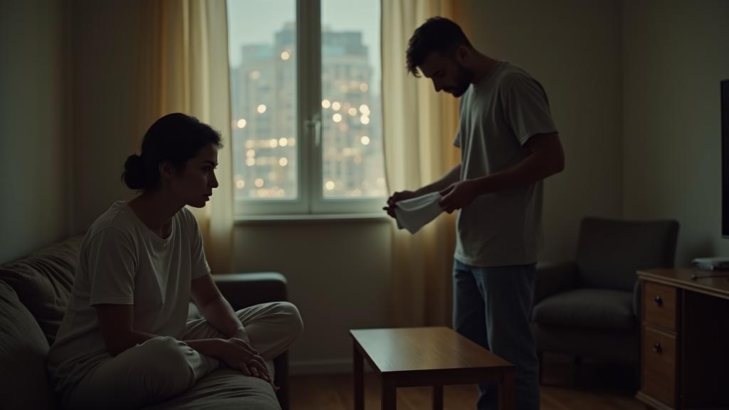 Вечер был душным, окна в гостиной нараспашку, но воздух всё равно казался тяжёлым. Аня сидела на диване, скрестив ноги и глядя в пол. Её пальцы нервно мяли край подушки, пока она пыталась подобрать слова. Напротив, у журнального столика, стоял Дмитрий, сжимая в руках лист бумаги. Его лицо было напряжённым, брови сдвинуты, а голос дрожал от сдерживаемого раздражения.