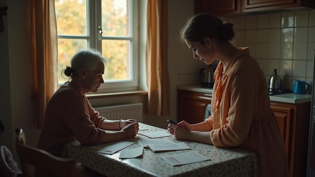 Вера сидела за кухонным столом, глядя на стопку счетов, которые принесла почтальонка утром. Электричество, вода, коммуналка — цифры мелькали перед глазами, но мысли были где-то далеко. За окном шелестел осенний ветер, срывая последние листья с клена во дворе. Она вздохнула, отложила бумаги и посмотрела на часы. Половина пятого. Скоро вернется с работы невестка Лена, а за ней и Артем. Надо было начинать готовить ужин, но Вера медлила. Сегодня ей хотелось просто посидеть в тишине.