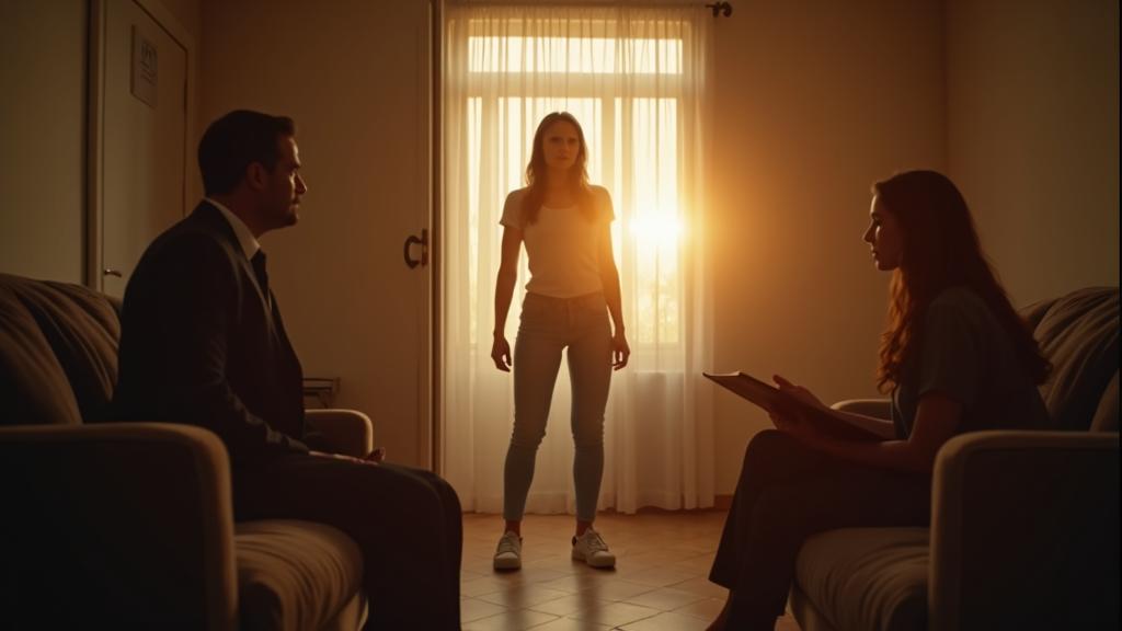 Мария вернулась домой на полчаса раньше, предвкушая спокойный вечер в уюте своей квартиры. Однако, едва переступив порог, она застыла в дверях гостиной, не веря собственным глазам. Вечернее солнце медленно опускалось за горизонт, и его тёплые лучи, пробиваясь сквозь тонкие шторы, окрасили комнату в мягкий золотистый оттенок. В этом волшебном свете два силуэта казались почти нереальными, словно тени из другого мира.