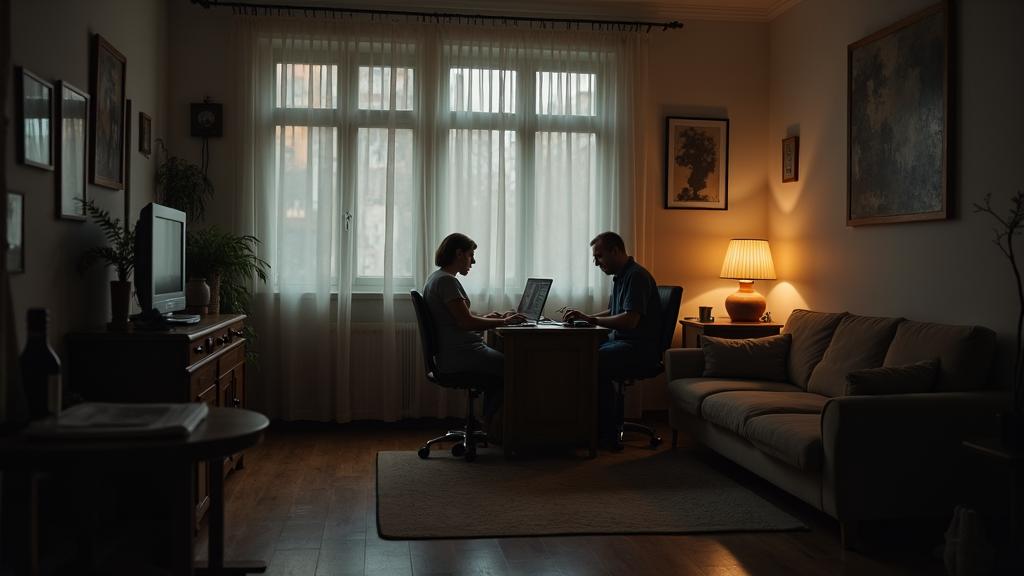 Маша сидела за столом, сгорбившись, и нервно крутила в руках ложку. Её муж, Олег, стоял у плиты, держа в руках телефон, и что-то бормотал, листая сообщения.