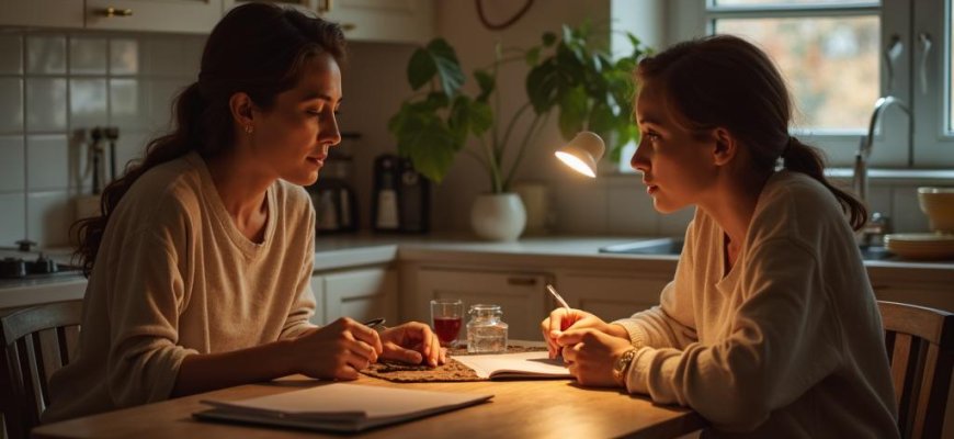 В тесной кухне пахло жареной картошкой с укропом. На столе, покрытом старой клеёнкой с цветочным узором, стояли тарелки с неровными краями, а в центре — чугунная сковорода, ещё шипящая от жара. Свет от лампы под жёлтым абажуром падал на лица матери и дочери, сидящих друг напротив друга.