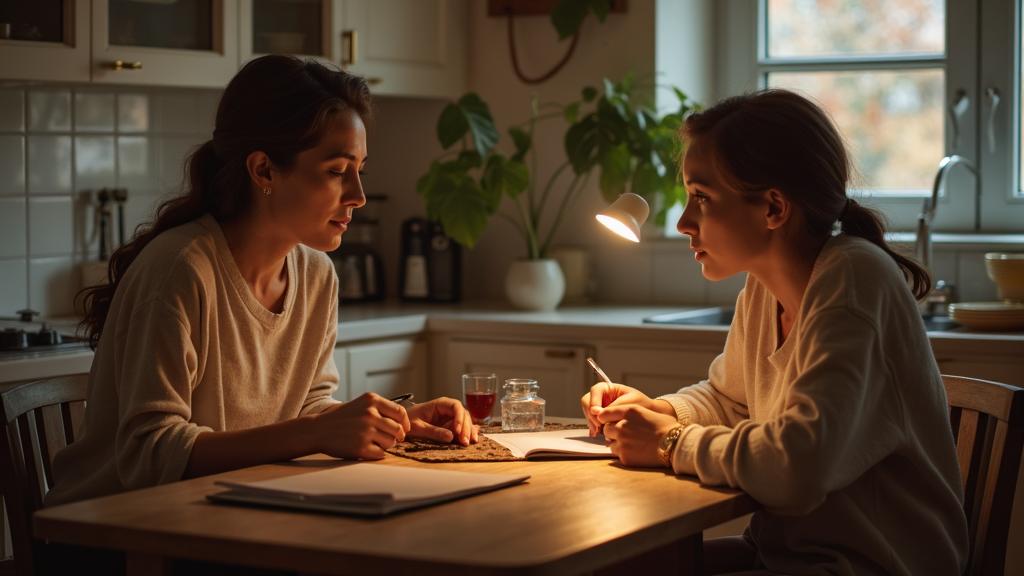 Марина сжала пальцы под столом, стараясь не сорваться. Её взгляд упал на потрескавшийся угол клеёнки, и она подумала, что эта кухня, эта квартира матери, этот разговор — всё будто застыло во времени, повторяясь снова и снова.