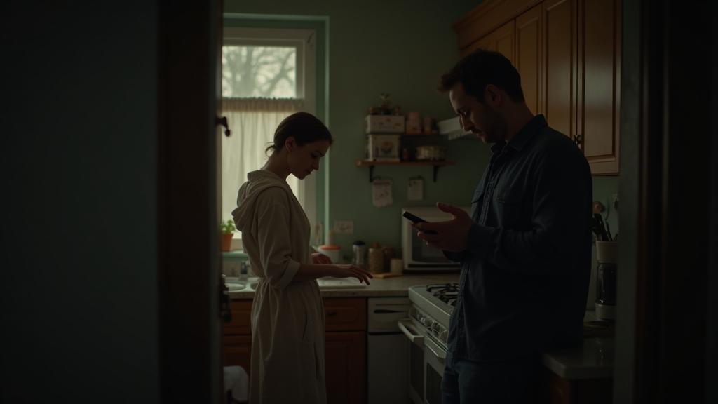 Лена проснулась от звука будильника. Шесть утра, за окном ещё темно, но спать дальше нельзя. Она потянулась, чувствуя, как тело ноет после вчерашней смены в кафе. Работа официанткой не была её мечтой, но деньги приносила, и Лена ценила это. Она встала, накинула халат и пошла на кухню. Там уже сидел Дима, её муж, листая телефон.