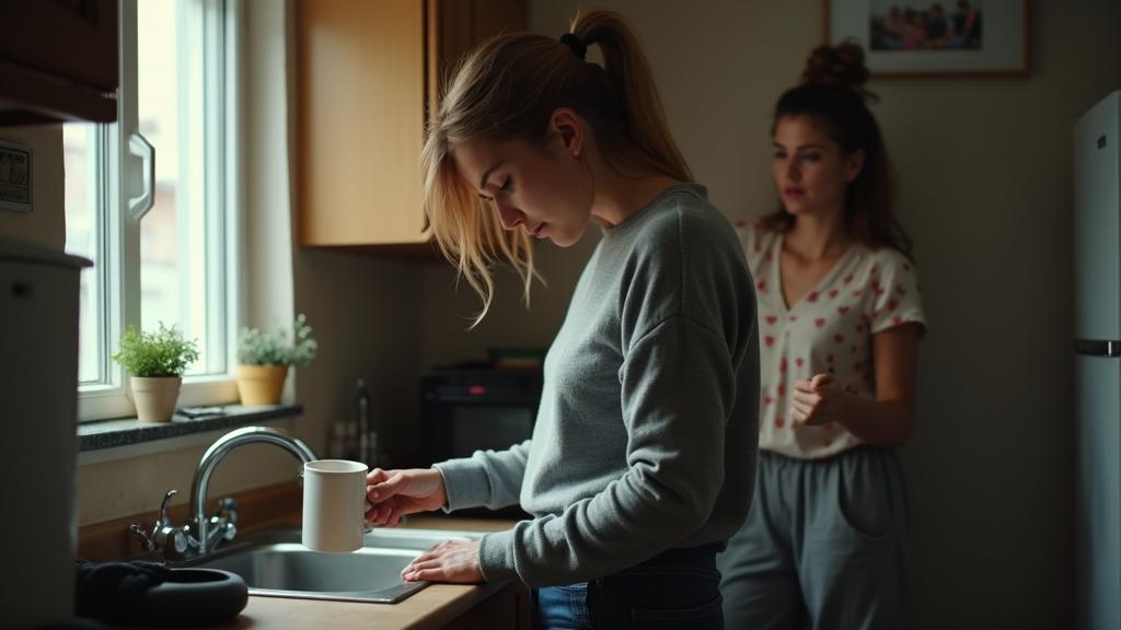 Ольга стояла у раковины, спиной к ним. Протирала кружку. Не спеша. Не огрызаясь. Но и не уходила — стойкая, как будто вымеряла эффект каждого своего движения.