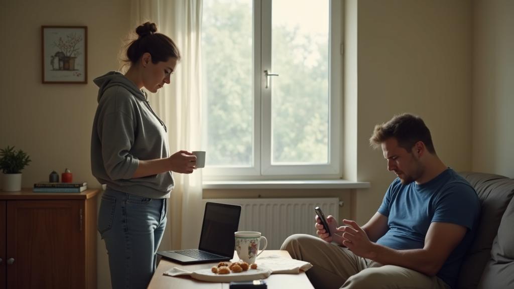 На секунду повисло напряжение, как после удара вилкой по фарфору. Он смотрел на неё, будто увидел впервые. Как будто вдруг заметил, что у неё тёмные круги под глазами, серая от усталости кожа, и что она не красилась третий день.