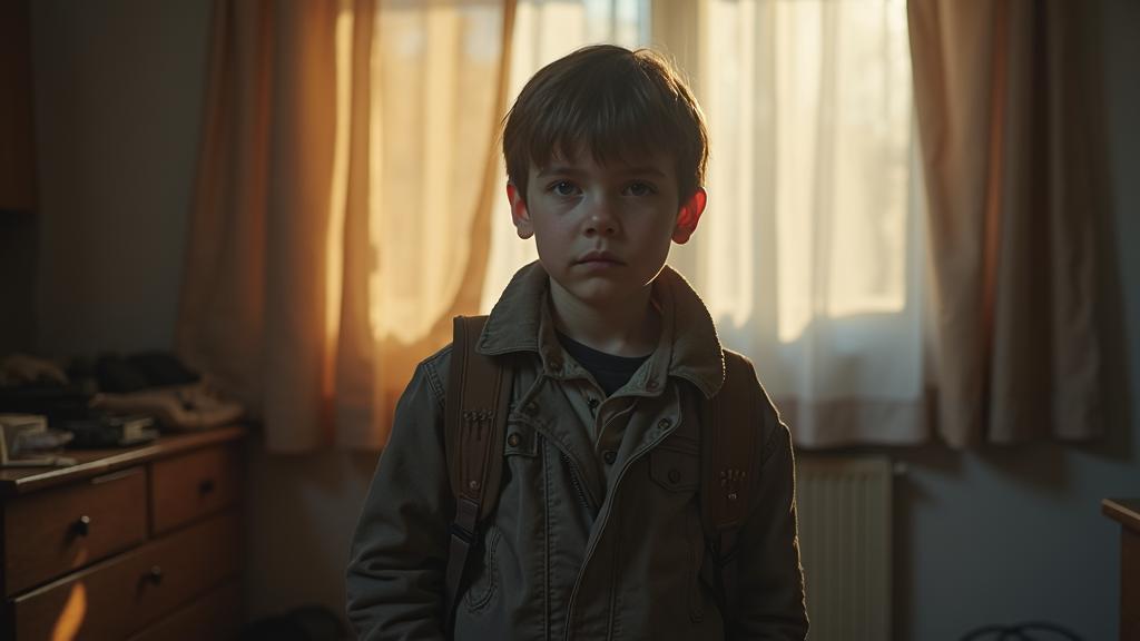 Дворовая котельная гремела трубами, ветер поднимал с асфальта унылые клочья пыли, а на школьной площадке уже начали появляться ребята, спешившие на утренние уроки. Среди общего шума, смеха и громких приветствий совсем потерялся невысокий мальчик с большими глазами. Он шагал осторожно, будто старался не попасть никому под ноги. На нём была старая, явно поношенная куртка, местами заметно выцветшая, а на воротнике торчали нитки — явный признак того, что вещь видела лучшие времена.