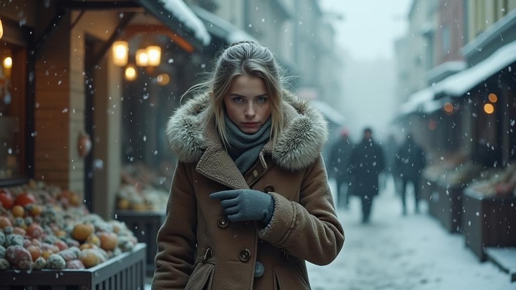 Расстроенная Валентина сновала по торговым рядам. Снег скрипел под ногами, таких же как и она зевак, подгоняемых морозом. Ресницы, шаль, песцовый воротник пальто Вали покрылись инеем.