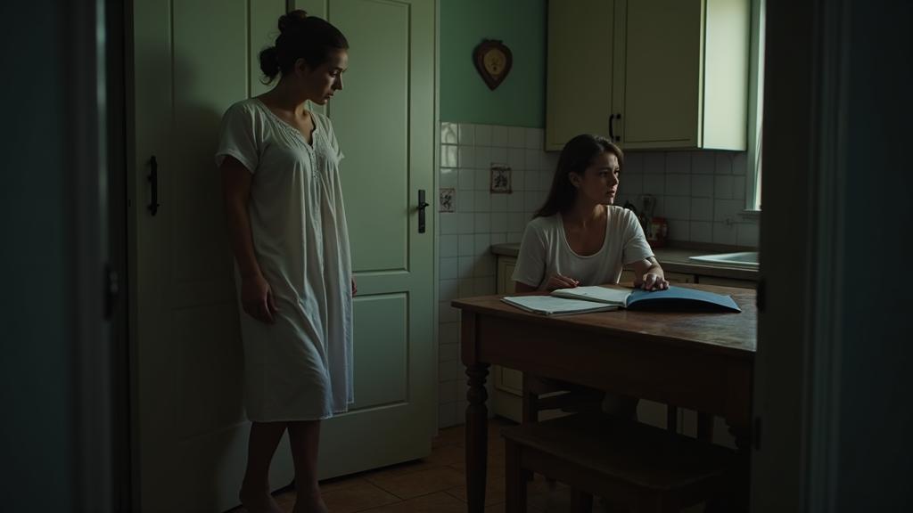 «О чём это они?» — мысль пронзила Аню, как холодная игла. Она осторожно встала с кровати и на цыпочках подошла к двери. Дверь была приоткрыта, и через щель она увидела их: за кухонным столом сидели Денис и его мама. Между ними лежала какая-то папка и… её пузырёк с лекарством.