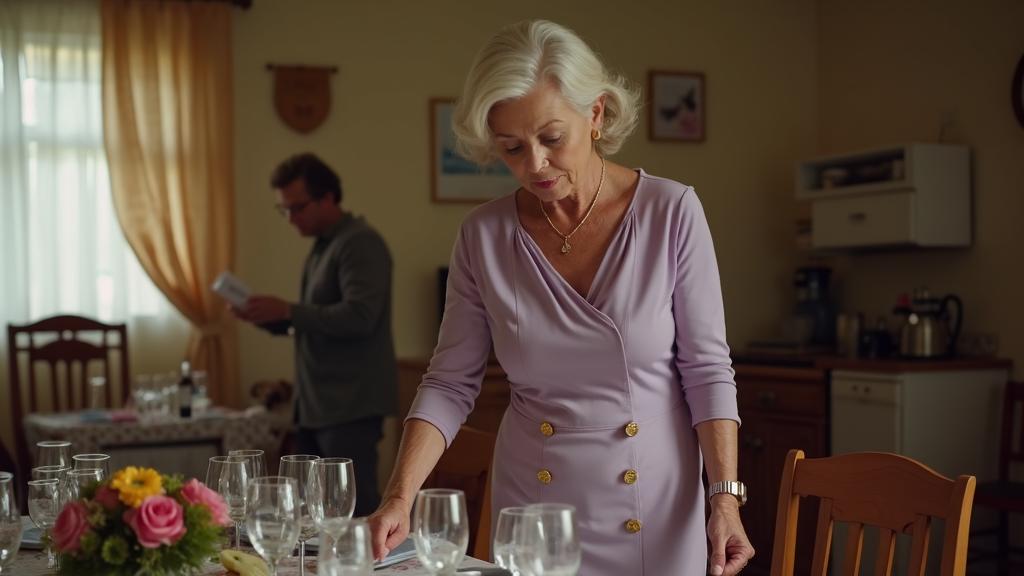 В этот день хрущёвка преобразилась. Марина Радионовна носилась с утра, расставляя хрусталь на праздничный стол, поправляя занавески и каждые пять минут заглядывая в зеркало — всё ли в порядке с причёской из парикмахерской. Новое сиреневое платье с золотыми пуговицами сидело как влитое, чёрный поясок подчёркивал талию. Она чувствовала себя не хуже артистки перед выходом на сцену Большого театра.