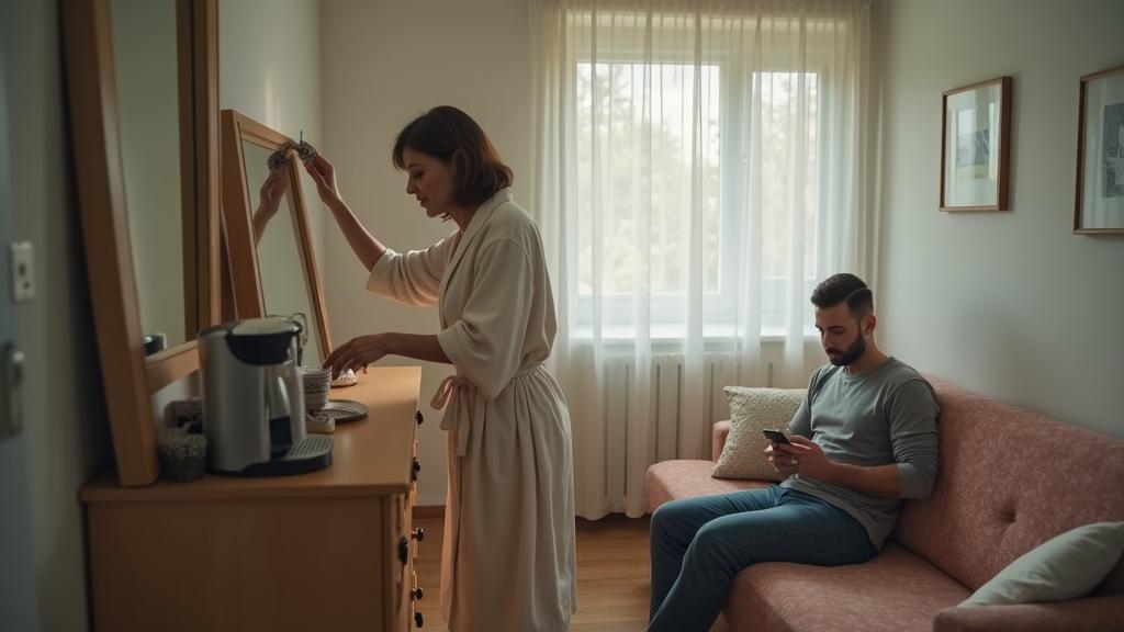 Утро начинается с поджаренного хлеба и тихого ворчания кофемашины. Я натираю зеркала до блеска, поправляю подушки на диване, глажу рубашки, пока он щелкает пультом и что-то лениво читает на экране телефона.