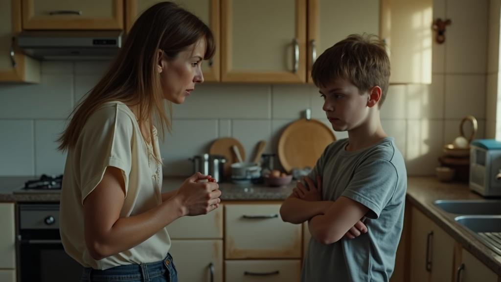 Костя сидел, втянув голову в плечи, боясь пошевелиться. Он впервые видел мать такой — тихой, но какой-то незнакомой, будто закаменевшей.