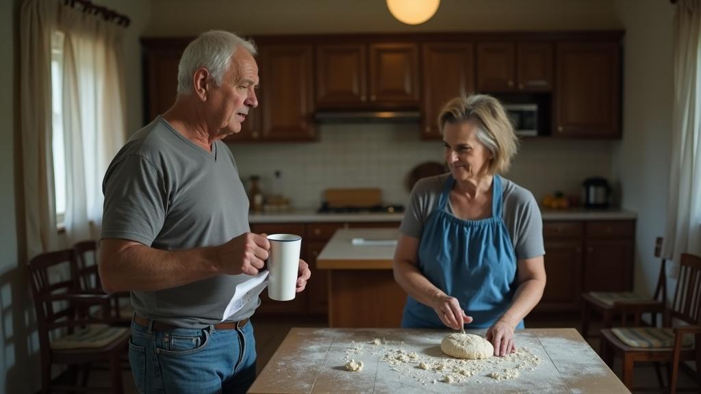 Марина вздохнула, продолжая месить тесто. Мука тонким слоем покрывала ее руки до локтей, образуя белые разводы на синем фартуке.