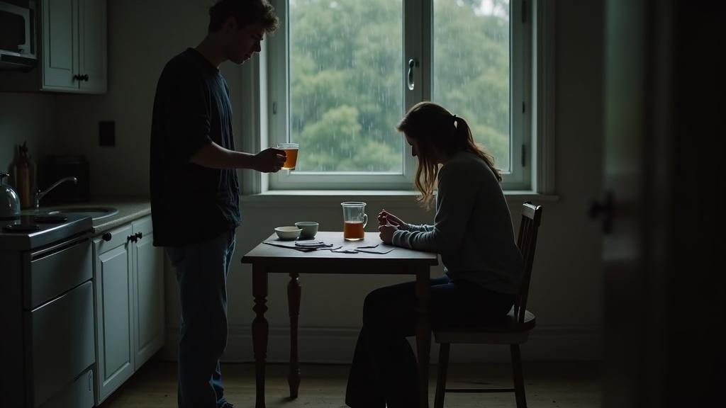 Дождь стучал в окна хрущёвки, пока Алексей разливал чай с дрожащими руками. Марина, перебирая счета за коммуналку, даже не подняла глаз.