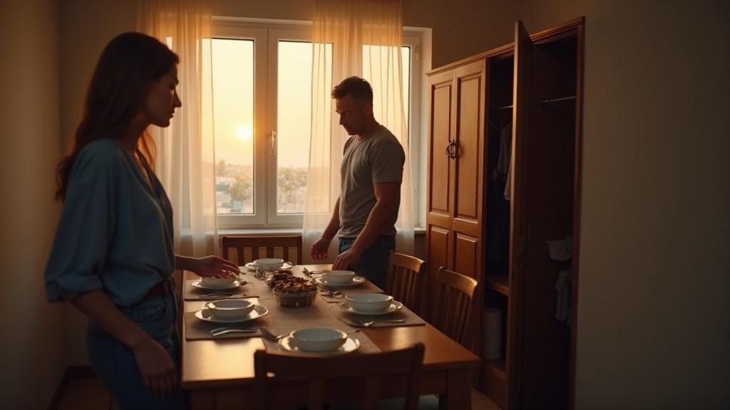 Вечер был теплым, и Анна старательно накрывала стол в ее пока что их родной квартире. Через окна было видно, как солнце садится за горизонт, окрашивая небо в золотые оттенки.