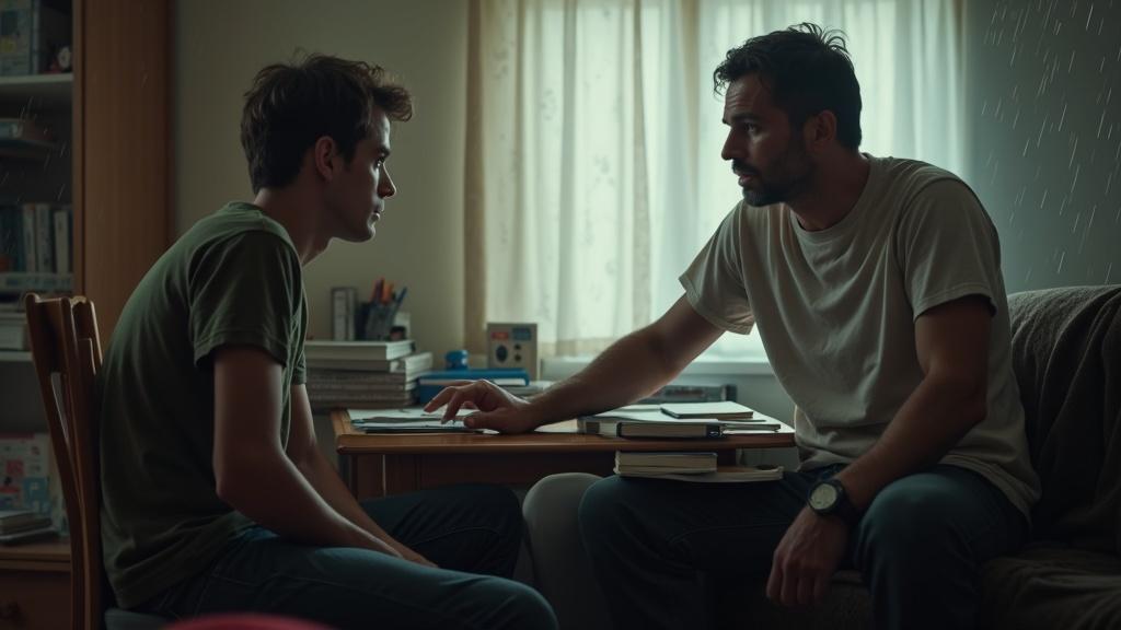 — Антон, сынок, освободи пару полочек в шкафу, — попросила мама, заглядывая в комнату. — Сергей Викторович вещи привез.