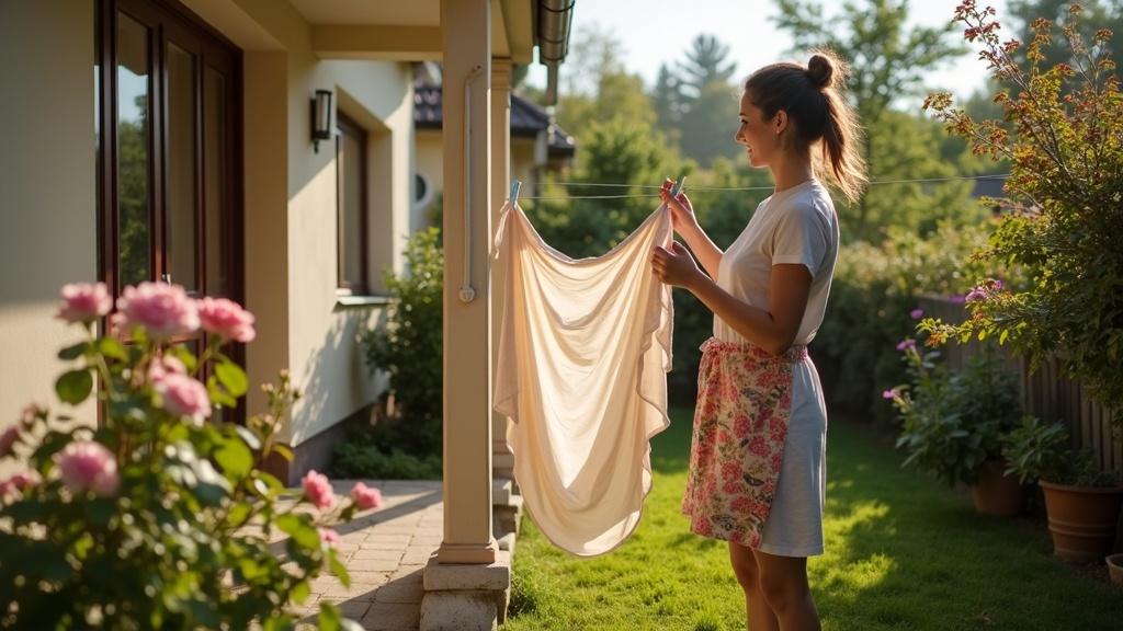 Лена стояла на крыльце, щурясь от июльского солнца, прищепки в зубах, в руке — мокрая простыня, пахнущая мылом и свежей травой. Она ловко цепляла её за верёвку, когда рядом на клумбе раздался голос: